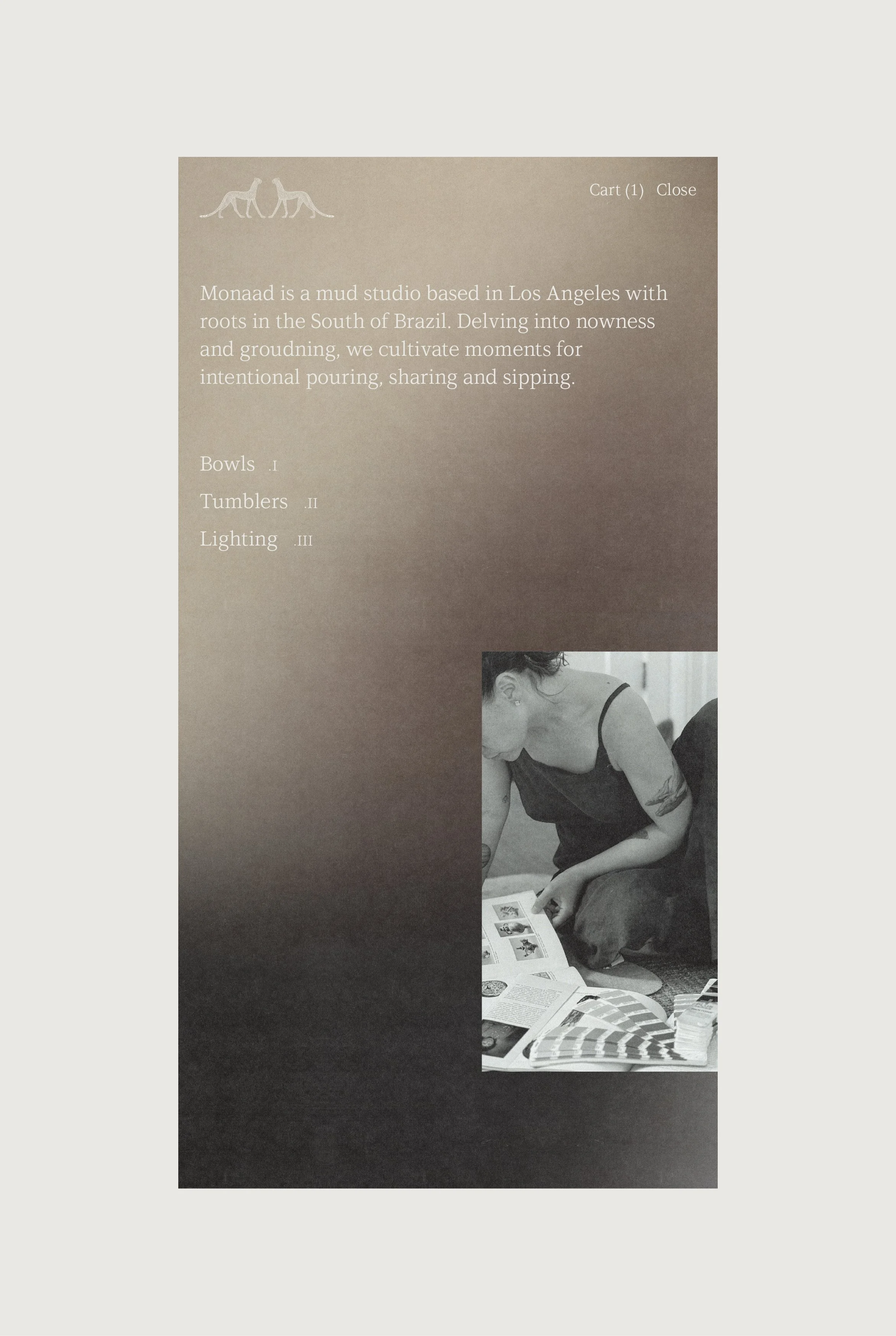 Monaad is a Los Angeles–based mud studio creating functional stoneware for intentional pouring, sharing, and sipping. As the practice evolved into a brand, it required a visual identity and ecosystem that could position the work as both craft and ritual object.