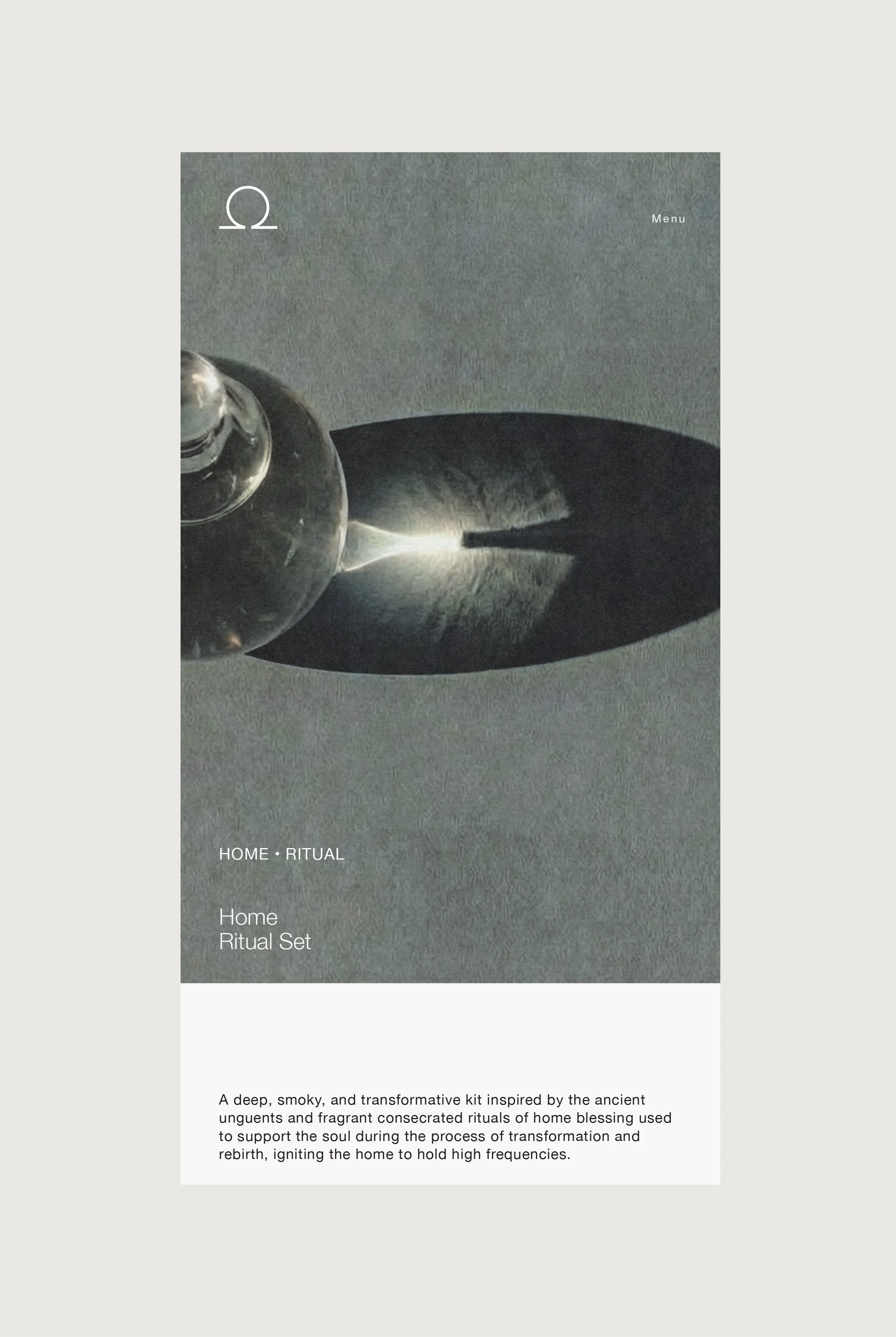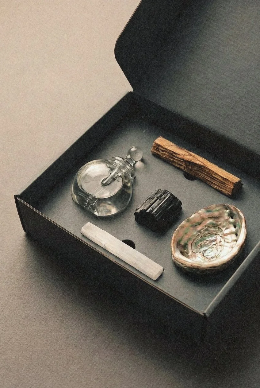 The Home Ritual Set was designed as a contemporary expression of ancient orientation practices. Rather than leaning on ornament or overt symbolism, the design focuses on structure, proportion, and material refinement to establish a sense of thoughtful stimulation that leads to calm. The embossed geometry on the exterior references cosmic symmetry and ritual thresholds, offering a tactile signal of entry before the box is opened. Inside, the system balances precision and openness. Allowing each element to retain autonomy while contributing to a coherent spatial field. Light, shadow, and material contrast are used intentionally to heighten presence and attention, transforming a familiar practice into an elevated, grounded experience that feels both timeless and distinctly modern.