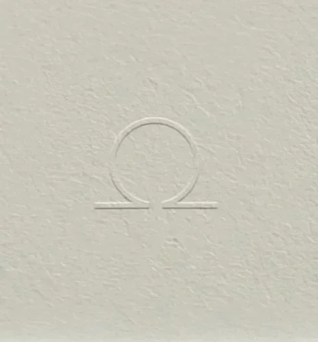 At the center of this world sits the wordmark, a threshold-like form that invites the viewer inward through its quiet geometry and the subtle diacritic that lifts the name into breath. Complementing it, the omega symbol functions as a cosmic anchor, a circle upheld by two grounding lines that mirrors the school’s teachings on wholeness, presence, and the union of the infinite with the embodied.